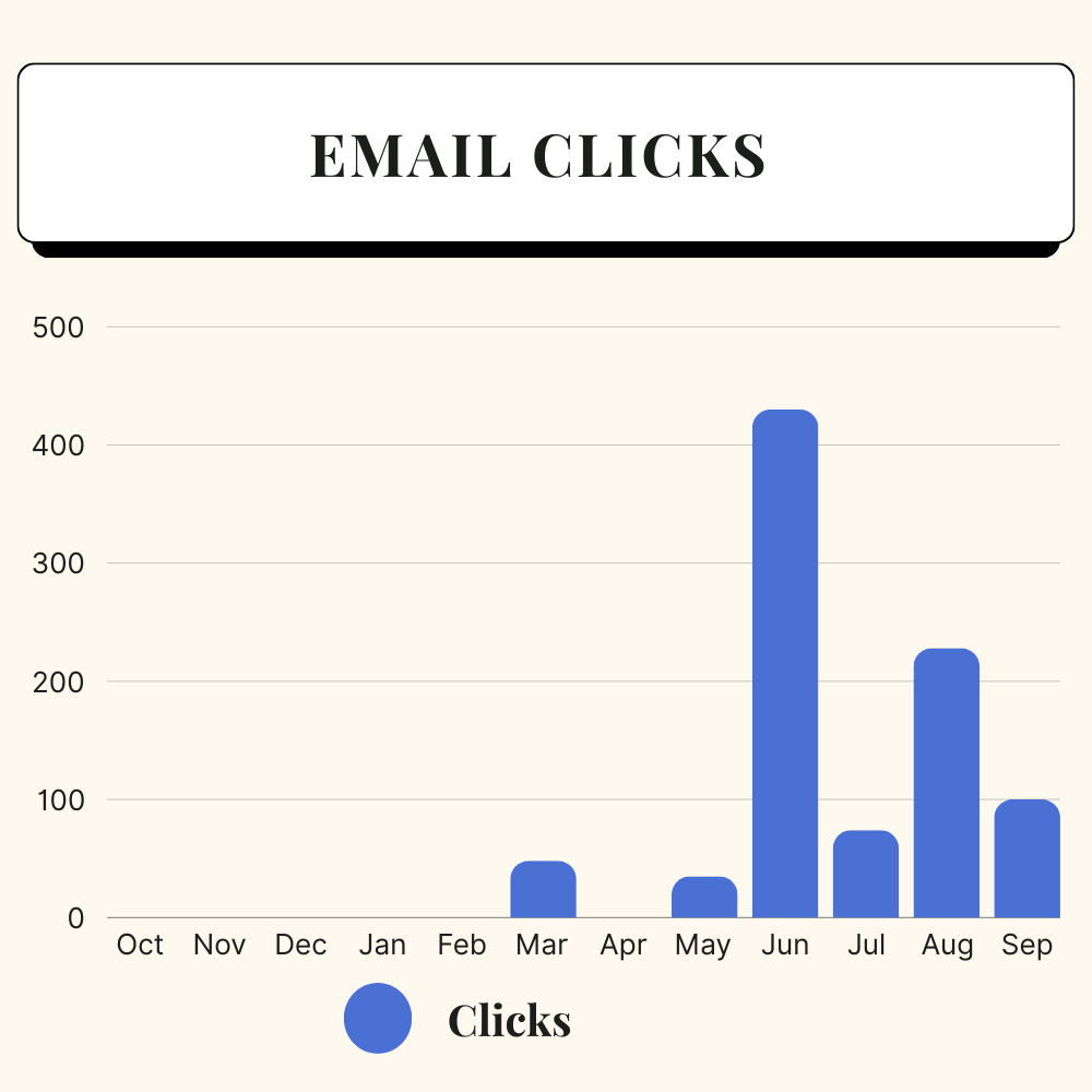 Over the course of the year, our social media presence experienced substantial growth in both engagement and link clicks, which directly translated to increased website traffic and stronger customer interaction. These gains were achieved entirely through organic efforts, supported by consistent posting, audience engagement, and a targeted content strategy.